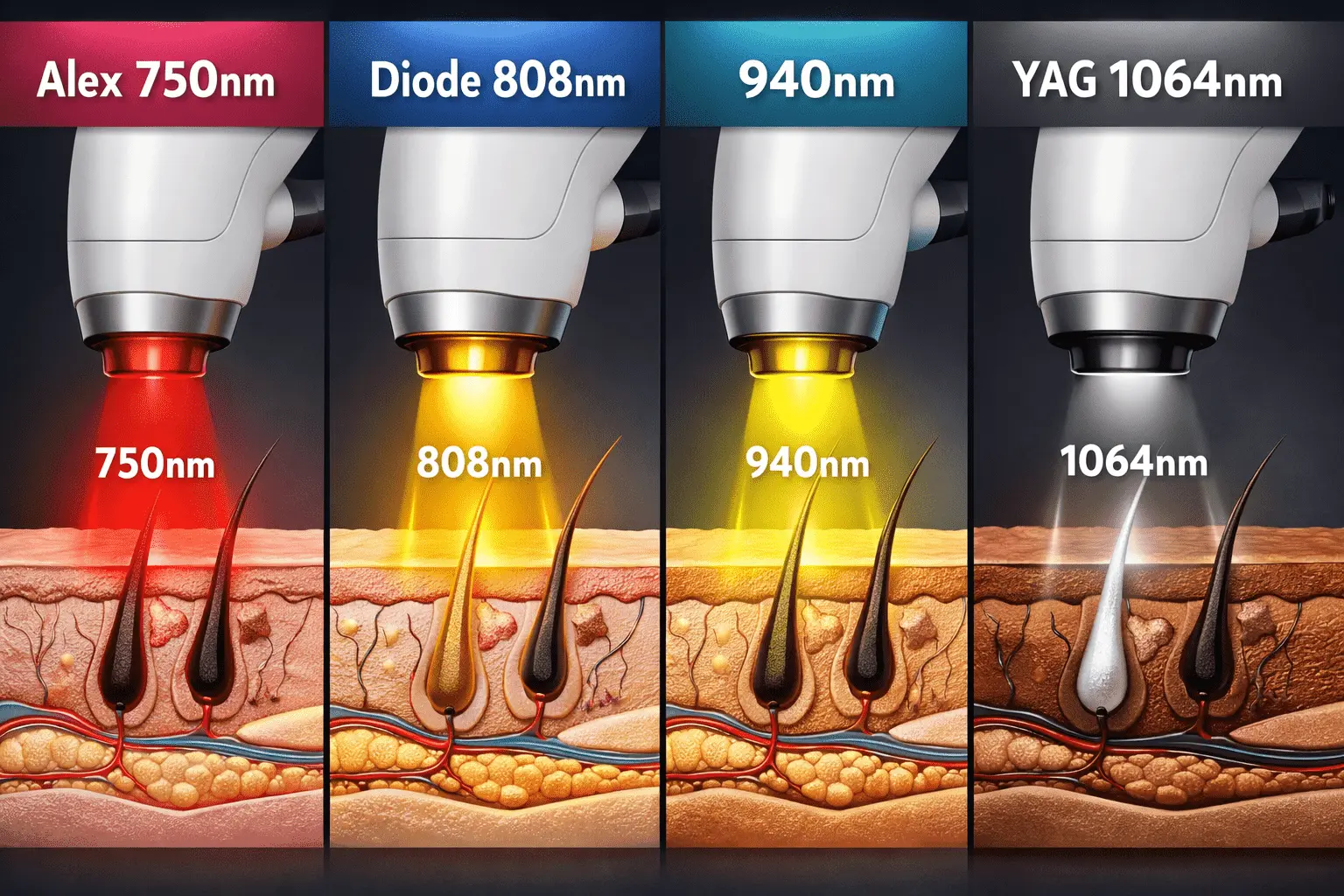طول موج 755 نانومتر: ایدهآل برای موهای نازک و پوستهای روشن.