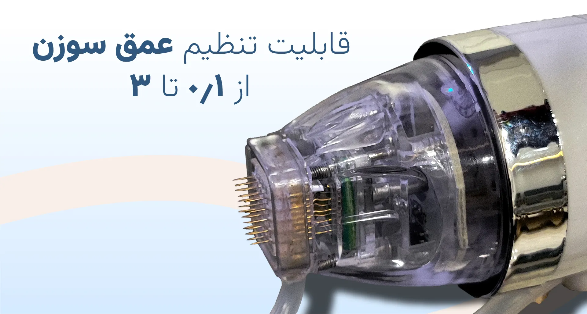- تنظیم عمق سوزن از 0.1 تا 3 میلیمتر با کنترل 0.1: این سطح از دقت باعث میشود پزشک بتواند درمان را کاملا شخصیسازی کند: